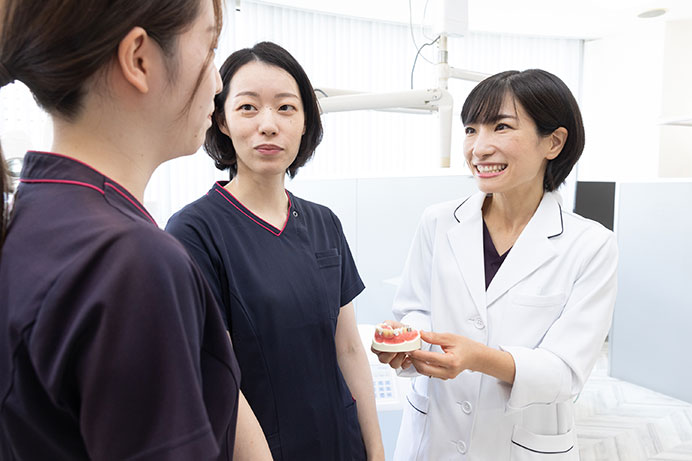 噛むというのは全身の健康にとって大事なことです。口腔内の状態の悪化により、きちんと噛めなくなって胃が悪くなる。胃が悪くなることで食生活が偏ってしまい、糖尿病などの全身疾患につながってしまう。以前勤務していたクリニックでそういった患者さんを見てきました。全身疾患の入り口は歯科なのでは、ということを強く感じています。ですから、患者さんの選択肢を広げる意味でも、質の高い治療の提案ができるようにしています。当院の患者さんは、ご自分からメタルフリーの話をされるなど、意識が高く健康にも気を使っていらっしゃる方が多いですね。